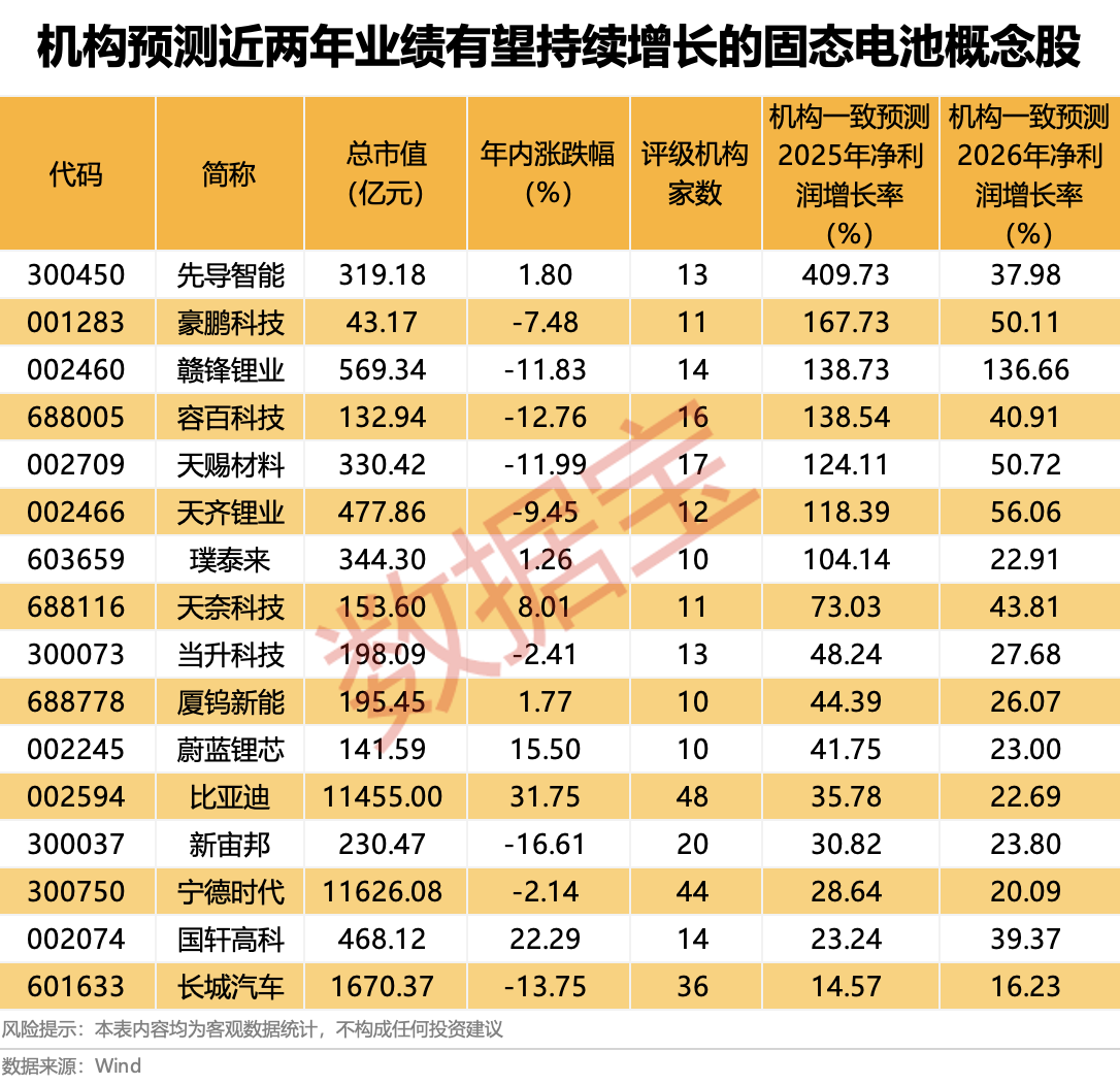 业绩有望持续,高增长的固态电池概念股出炉业绩有望持续,高增长的固态电池概念股出炉